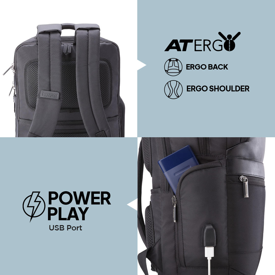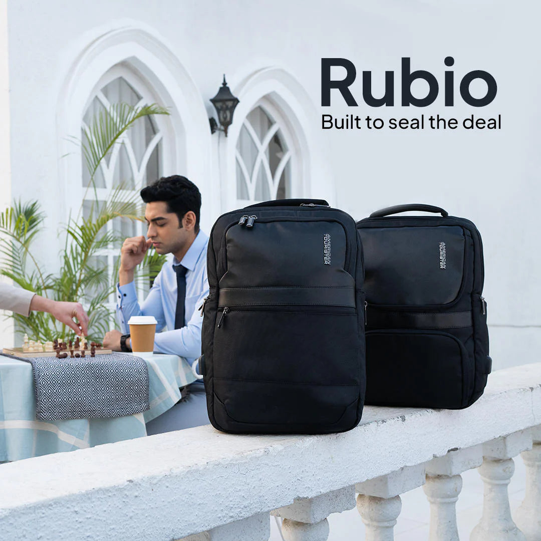 Introducing the American Tourister RUBIO– a perfect blend of style, durability, and functionality. Designed with water-resistant material, adjustable straps, and spacious compartments, it’s the ultimate companion for professionals on the move.